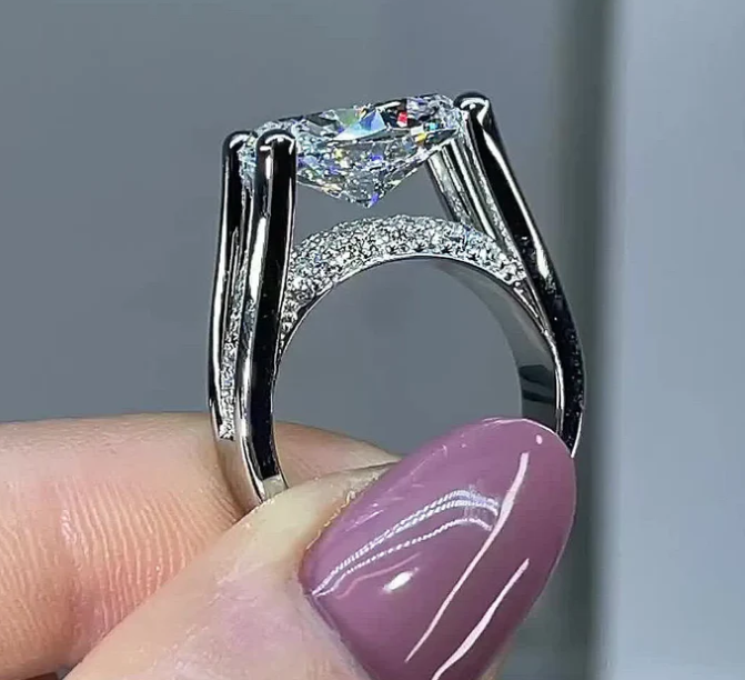 The 3.5CT Distinctive Inverted Tension Set Oval Cut Sterling Silver Engagement Ring is a breathtaking piece of jewelry that combines classic elegance with modern flair. Featuring a dazzling oval-cut stone in a unique inverted tension setting, this ring showcases maximum brilliance and visual impact from every angle.